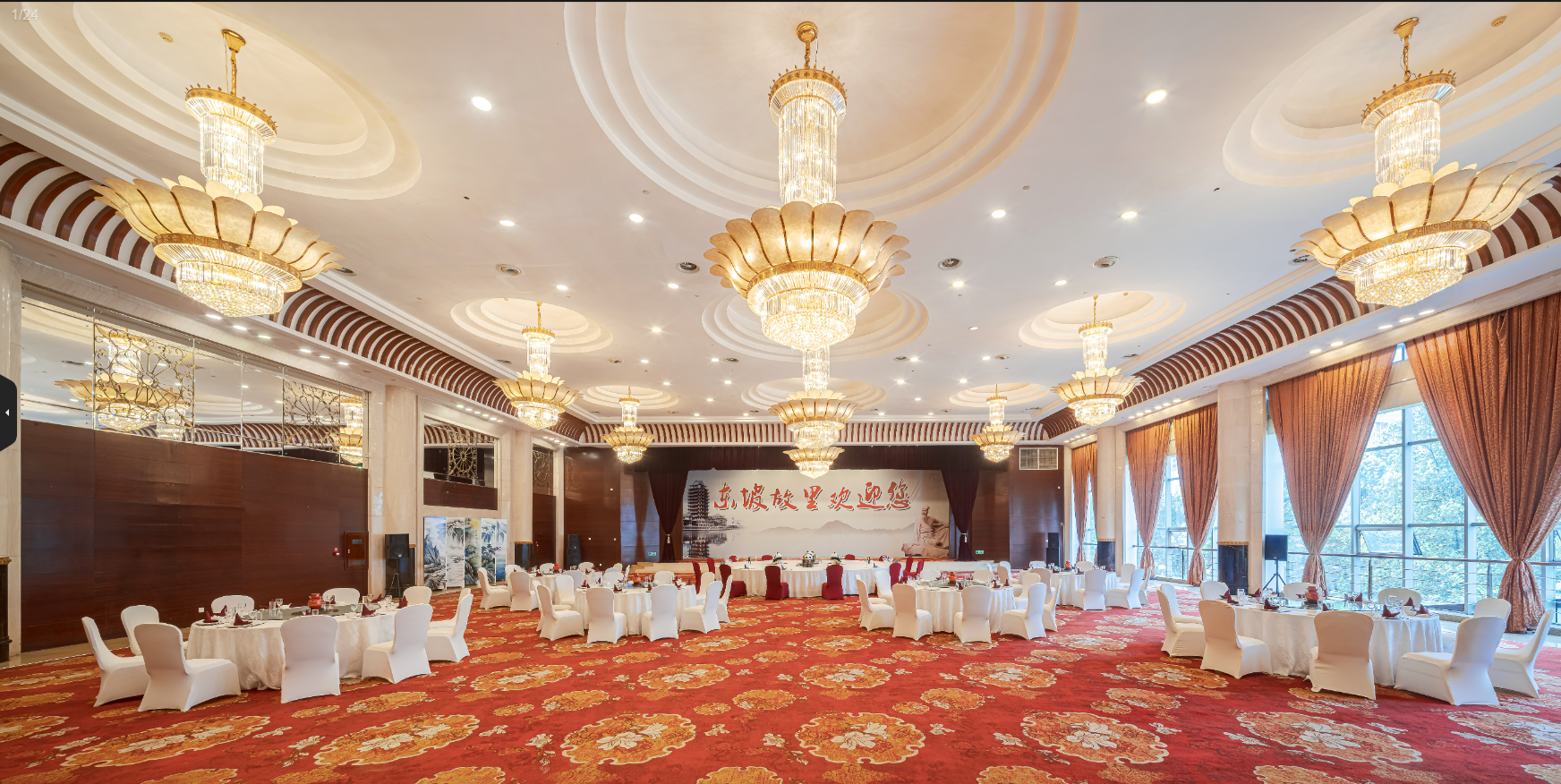 國(guó)宴廳,可擺48桌,餐位數(shù)480人,面積650平方米