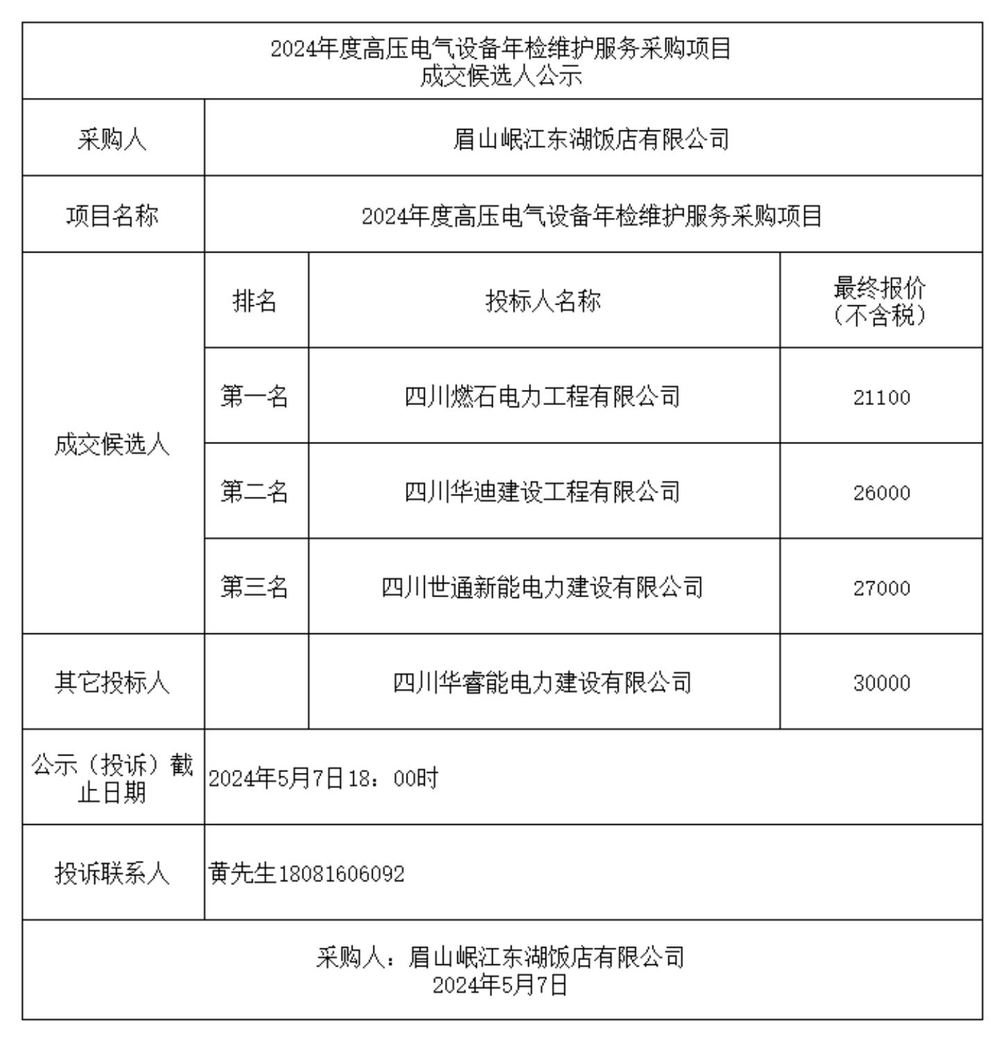 2024年度高壓電氣設(shè)備年檢維護服務(wù)采購項目成交候選人公示