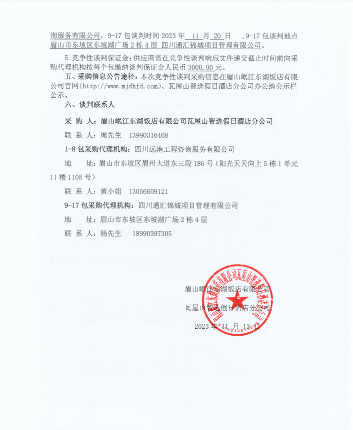 瓦屋山智選假日酒店2023一2025年度非定量采購(gòu)項(xiàng)目
